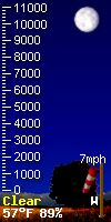 WXSIM forecast: Mostly cloudy to cloudy in the evening, becoming mostly cloudy after midnight. Light to moderate fog in the evening, then patchy light fog after midnight. A chance of rain. Low 8°. Wind west-northwest around 9 kph, gusting to 28 kph, in the evening, becoming west-southwest around 27 kph, gusting to 43 kph, after midnight. Chance of precipitation 30 percent. Precipitation mostly less than 2 mm.