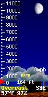 WXSIM forecast: Dense overcast. Rain likely in the morning, then a chance of rain in the afternoon. High 17°. Wind south-southwest around 33 kph, gusting to 60 kph, in the morning, becoming 49 kph, gusting to 68 kph, in the afternoon. Chance of precipitation 70 percent. Precipitation mostly between 5 and 10 mm.