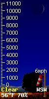 WXSIM forecast: Fair in the evening, becoming partly cloudy after midnight. Low 7°. Wind southwest around 21 kph, gusting to 36 kph.