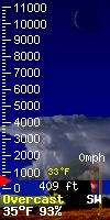 WXSIM forecast: Partly to mostly cloudy in the evening, becoming cloudy after midnight. A slight chance of rain after midnight. Low 4°, but temperatures rising after midnight. Wind west around 4 kph in the evening, becoming 10 kph after midnight. Chance of precipitation less than 20 percent. Precipitation mostly less than 2 mm.