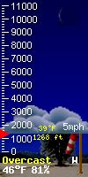 WXSIM forecast: Partly to mostly cloudy in the evening, becoming fair to partly cloudy after midnight. A slight chance of rain. Low 2°. Wind north-northwest around 19 kph, gusting to 37 kph, in the evening, becoming 13 kph, gusting to 25 kph, after midnight. Chance of precipitation 20 percent. Precipitation mostly less than 2 mm.