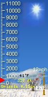 WXSIM forecast: Dense overcast. Rain likely. High 9°. Wind east-southeast around 29 kph, gusting to 47 kph. Chance of precipitation 60 percent. Precipitation mostly between 2 and 5 mm.