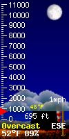 WXSIM forecast: Partly cloudy in the evening, becoming mostly cloudy after midnight. A slight chance of rain after midnight. Low 11°. Wind east-northeast around 30 kph, gusting to 44 kph. Chance of precipitation 20 percent. Precipitation mostly less than 2 mm.