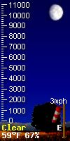 WXSIM forecast: Partly cloudy in the evening, becoming clear after midnight. A slight chance of rain. Low 7°. Wind east-northeast around 19 kph, gusting to 35 kph. Chance of precipitation less than 20 percent. Precipitation mostly less than 2 mm.
