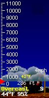 WXSIM forecast: Mostly cloudy. A slight chance of rain. High 8°. Wind south-southeast around 14 kph, gusting to 33 kph, in the morning, becoming east in the afternoon. Chance of precipitation less than 20 percent. Precipitation mostly less than 2 mm.