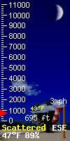 WXSIM forecast: Fair to partly cloudy in the evening, becoming mostly cloudy to cloudy after midnight. A slight chance of rain after midnight. Low 8°, but temperatures rising after midnight. Wind southwest around 26 kph, gusting to 41 kph. Chance of precipitation less than 20 percent. Precipitation mostly less than 2 mm.