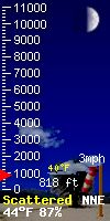 WXSIM forecast: Mostly cloudy in the evening, becoming cloudy after midnight. A slight chance of rain. Low 5°, but temperatures rising after midnight. Wind northeast around 27 kph, gusting to 38 kph, in the evening, becoming 20 kph, gusting to 32 kph, after midnight. Chance of precipitation 20 percent. Precipitation mostly less than 2 mm.