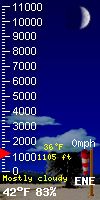 WXSIM forecast: Partly cloudy in the morning, becoming partly to mostly cloudy in the afternoon. A slight chance of rain. High 5°. Wind chill around 0. Wind east around 20 kph, gusting to 33 kph. Chance of precipitation less than 20 percent. Precipitation mostly less than 2 mm.